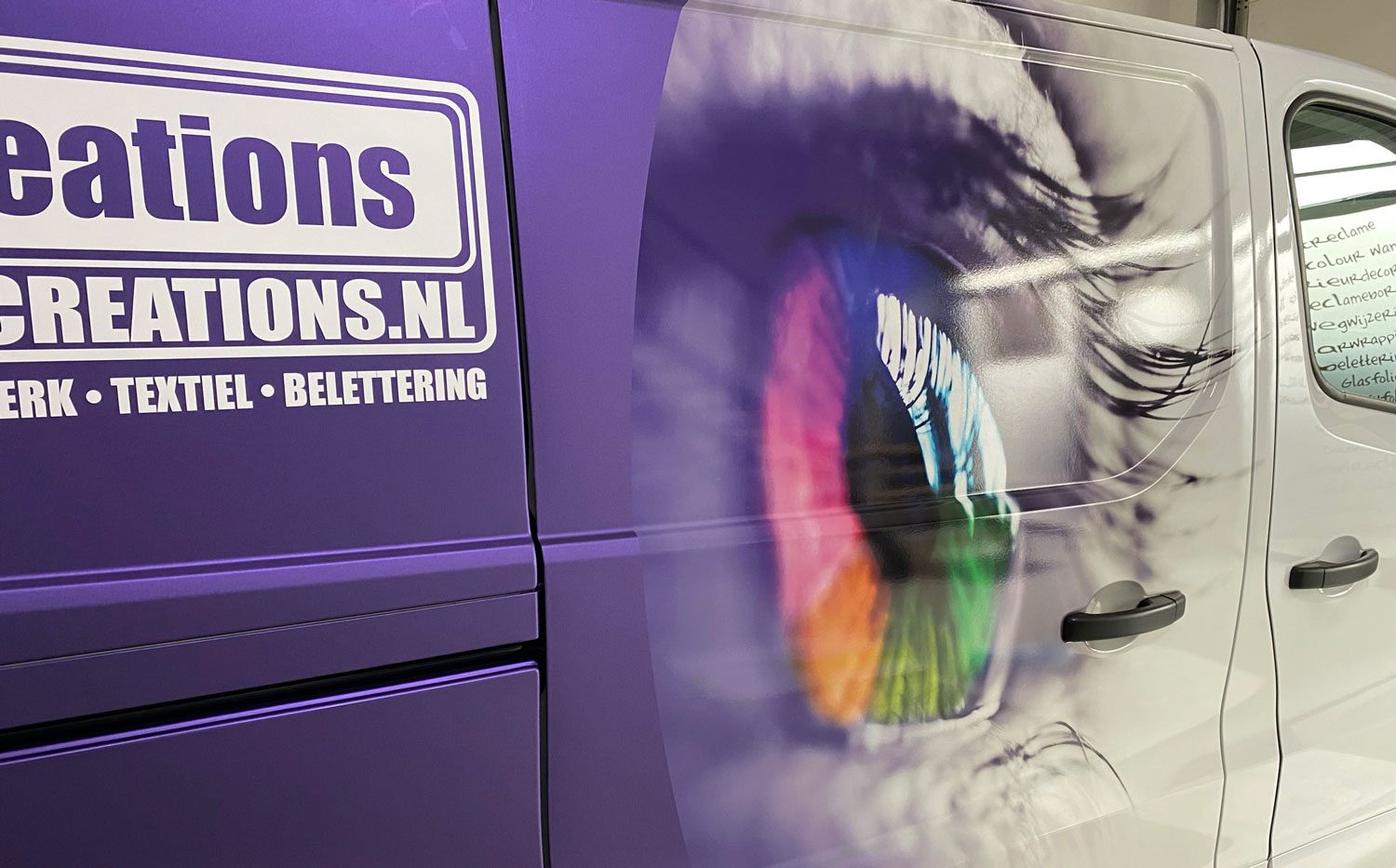 Er zijn vele mogelijkheden om jouw personenautos, bedrijfsbus of vrachtwagen te beletteren. Door de keuze uit talloze kleurenfolie in combinatie met full colour geprinte folies zijn de mogelijkheden oneindig. Samen met jou creëren we een ontwerp dat naadloos aansluit bij uw wensen.