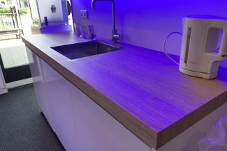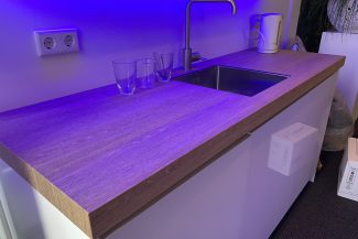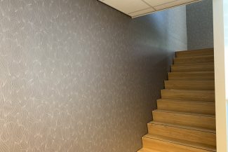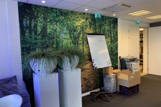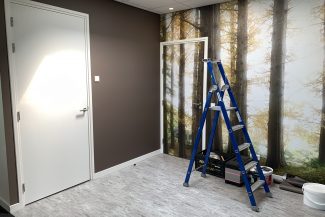 Bij BT groep hebben we ons steentje bij mogen dragen aan de aankleding in het pand. Zo hebben we door het gehele pand naadloos fotobehang gemonteerd en de keukenbladen voorzien van een mooie houtlook interieurfolie.