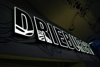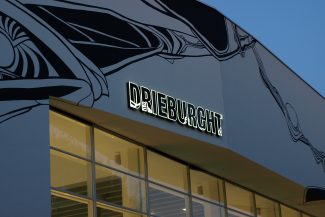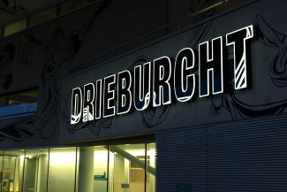 Als kers op de taart hebben we naast de bewegwijzering en aankleding ook de lichtreclames verzorgd bij sportcomplex de Drieburcht. Aan zowel de voor- als achterzijde hebben we een verlichtte doosletter gemonteerd waarin het kunstwerk van Jean-Luc Moerman is verwerkt. Deze heeft de grote beschilderingen op en in het pand gerealiseerd.